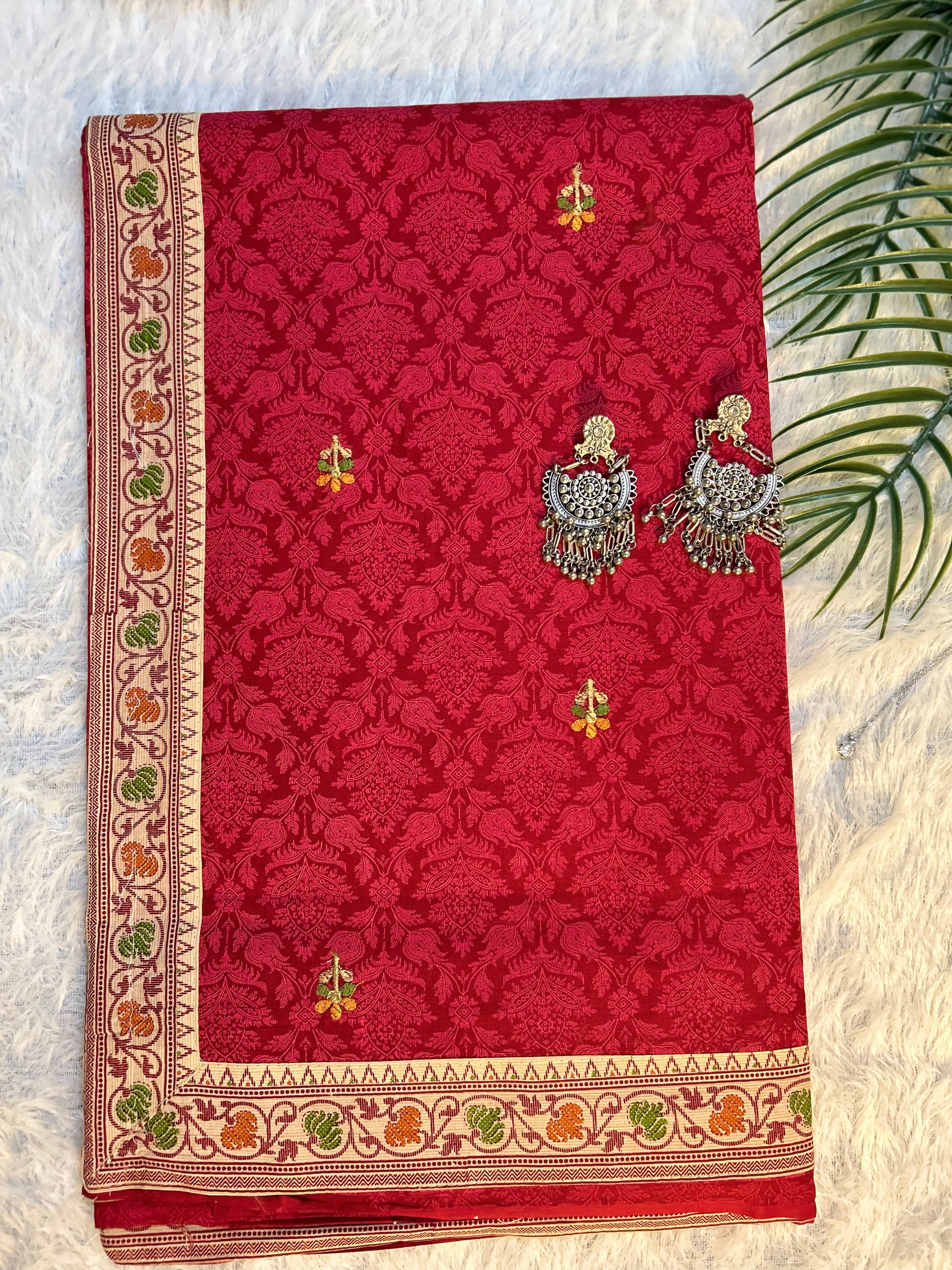 - Color: Classic Red with Gold-Tone Border & Pallu (more colors available)